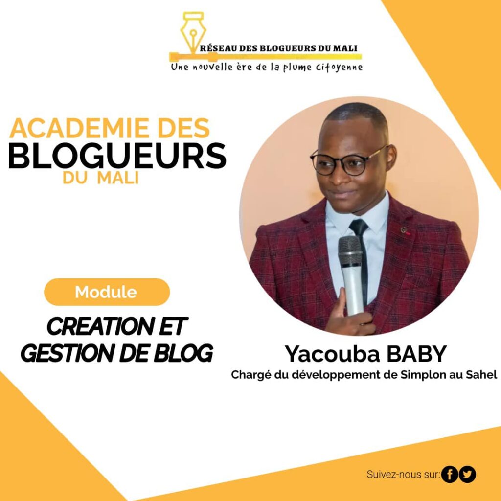 Avec l’Academie des Blogueurs du Mali, nos participants sont sur le point de plonger dans la « Création et Gestion de Blog » dirigé par l’expert inspirant Yacouba Baby Official pour catalyser le changement positif et l’engagement citoyen.