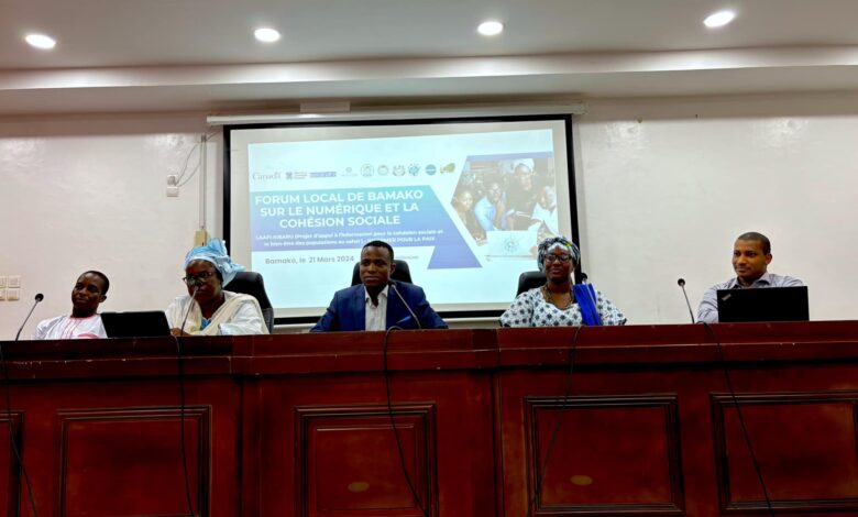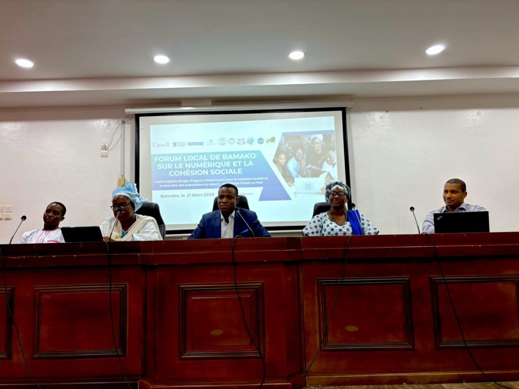 Nous sommes au Forum local de Bamako sur le numérique et la cohésion dans le cadre du projet d’appui à l’information pour la cohésion sociale et le bien-être des populations du Sahel Tabalé KunKan/Laafi-Kibaru de Search For Common Ground Mali ce jeudi 21 Mars 2024.