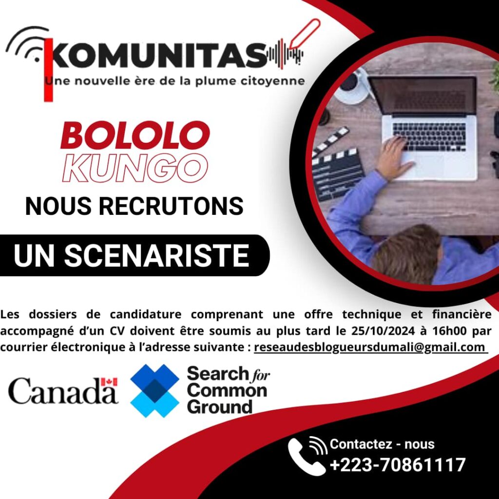 Sur financement de Search For Common Ground Mali dans le cadre de la mise en œuvre du projet LAAFI-KIBARU, KOMUNITAS, le Réseau des Blogueurs du Mali réalise une mini-série de 5 épisodes dénommé « BOLOLO KUNGO » qui vise à répondre de manière proactive à ces défis en utilisant un format attrayant et accessible sur les réseaux sociaux et à travers des projections pour sensibiliser et éduquer les populations locales, en mettant l’accent sur les aspects sensibles au genre et aux conflits.