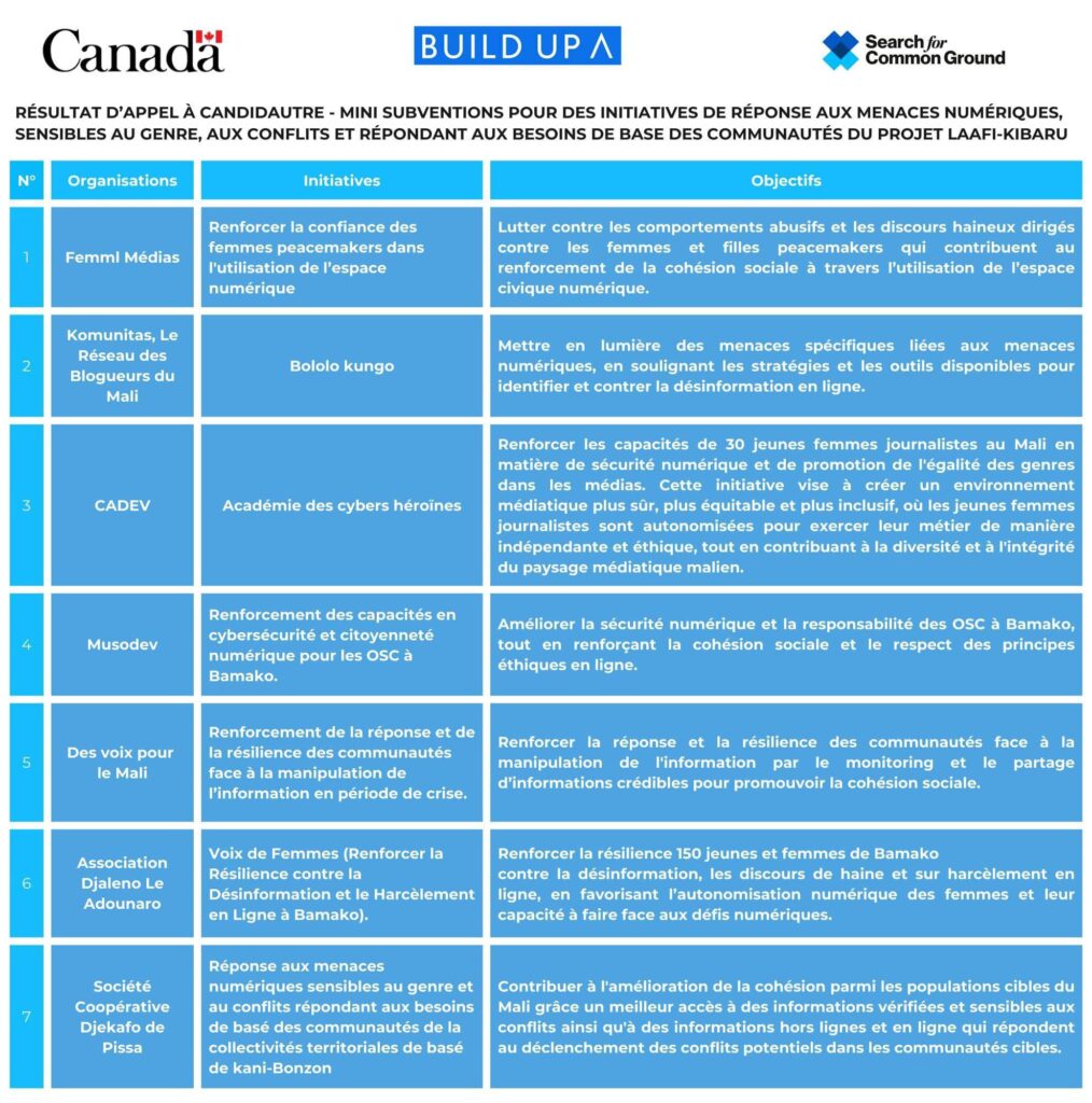 Nous sommes heureux de vous informer que notre projet « Bololo Kungo » a été retenu par Search For Common Ground Mali pour une subvention accordée dans le cadre de la mise en œuvre des activités du projet PAIS « Projet d’appui à l’information pour la cohésion sociale et le bien-être des populations au Sahel” au Mali.