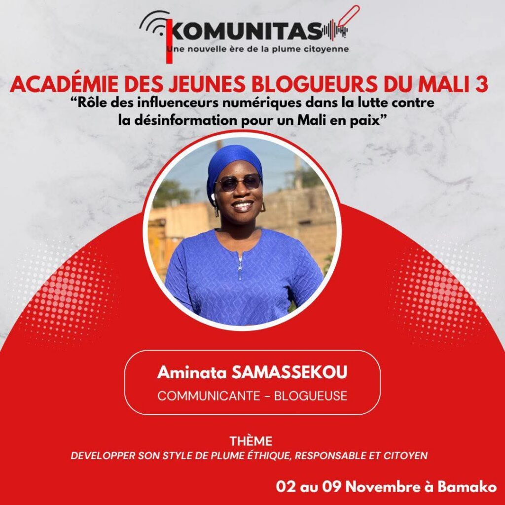 À l’Académie des Jeunes Blogueurs du Mali 3, nous aurons le plaisir d’accueillir Aminata Samassekou, communicante et blogueuse engagée, pour animer le module :📍 « Développer son style de plume éthique, responsable et citoyen »À travers cette session, Aminata partagera ses conseils pour écrire avec authenticité tout en respectant les principes de responsabilité, d’éthique et de citoyenneté dans l’espace numérique.💡 Ce module aidera les jeunes blogueurs à affirmer leur identité d’auteur tout en adoptant une écriture consciente, porteuse de valeurs et d’impact social.🗓️ Du 02 au 09 novembre 2025📍 À BamakoParce qu’écrire, c’est aussi un engagement envers la vérité et la société 🌍#KOMUNITAS #AJBM3 #PlumeResponsable #BloggingÉthique #LutteContreLaDésinformation #JeunesLeaders #BloggingCitoyen