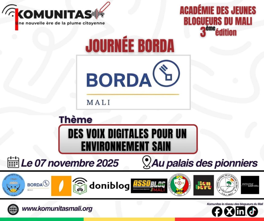 PlacĂ©e sous le thĂšme :🎯 « Des voix digitales pour un environnement sain »Cette journĂ©e sera un moment d’échanges et de rĂ©flexion autour du rĂŽle des jeunes et des crĂ©ateurs de contenu dans la promotion d’un environnement durable. đŸŒ±đŸ“… Le 07 novembre 2025📍 Au Palais des pionniers#Komunitas #AcadĂ©mieDesJeunesBlogueurs #BORDA #Blog4Change #Environnement #JeunesseEngagĂ©e