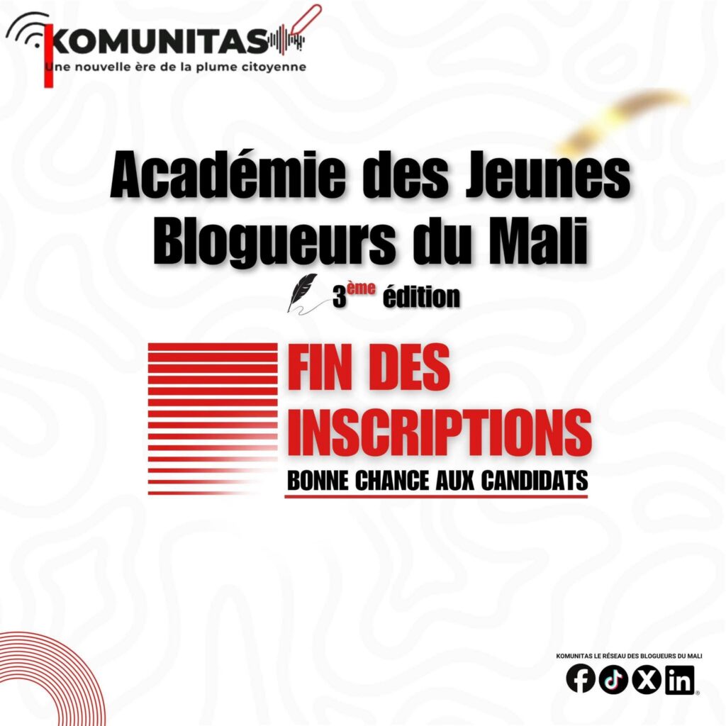 Les inscriptions pour lโ€™รฉdition 2025 de lโ€™Acadรฉmie des Jeunes Blogueurs du Mali sont dรฉsormais closes.Merci ร  toutes celles et ceux qui ont postulรฉ, partagรฉ, encouragรฉ, ou soutenu cette initiative. ๐Ÿ“Œ ๐‘ณ๐‘ฌ๐‘บ ๐‘ท๐‘น๐‘ถ๐‘ช๐‘ฏ๐‘จ๐‘ฐ๐‘ต๐‘ฌ๐‘บ ๐‘ฌฬ๐‘ป๐‘จ๐‘ท๐‘ฌ๐‘บ :- ๐‘จ๐‘ต๐‘จ๐‘ณ๐’€๐‘บ๐‘ฌ ๐‘ซ๐‘ฌ๐‘บ ๐‘ช๐‘จ๐‘ต๐‘ซ๐‘ฐ๐‘ซ๐‘จ๐‘ป๐‘ผ๐‘น๐‘ฌ๐‘บ ๐‘น๐‘ฌ๐‘ชฬง๐‘ผ๐‘ฌ๐‘บ- ๐‘ท๐‘ผ๐‘ฉ๐‘ณ๐‘ฐ๐‘ช๐‘จ๐‘ป๐‘ฐ๐‘ถ๐‘ต ๐‘ซ๐‘ฌ ๐‘ณ๐‘จ ๐‘ณ๐‘ฐ๐‘บ๐‘ป๐‘ฌ ๐‘ซ๐‘ฌ๐‘บ ๐‘ช๐‘จ๐‘ต๐‘ซ๐‘ฐ๐‘ซ๐‘จ๐‘ป๐‘บ ๐‘น๐‘ฌ๐‘ป๐‘ฌ๐‘ต๐‘ผ๐‘บ- ๐‘ซ๐‘ฌฬ๐‘ด๐‘จ๐‘น๐‘น๐‘จ๐‘ฎ๐‘ฌ ๐‘ถ๐‘ญ๐‘ญ๐‘ฐ๐‘ช๐‘ฐ๐‘ฌ๐‘ณ ๐‘ซ๐‘ฌ ๐‘ณโ€™๐‘จ๐‘ช๐‘จ๐‘ซ๐‘ฌฬ๐‘ด๐‘ฐ๐‘ฌLa parole est un pouvoir. Merci de lโ€™avoir revendiquรฉ.