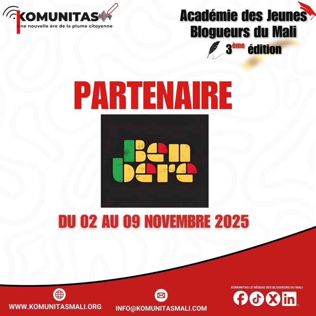 Dans le cadre de la 3e édition de l’Académie des Jeunes Blogueurs du Mali,prévu du 2 au 9 novembre 2025, Benbere s’engage aux côtés de Komunitas, Le Réseau des Blogueurs du Mali pour renforcer la liberté d’expression et la participation citoyenne.Média d’information et de journalisme citoyen, Benbere œuvre pour un Mali où chaque voix compte. À travers ses contenus et ses projets, il défend l’accès à l’information, encourage le débat public, et soutient les initiatives locales en faveur de la paix et de la cohésion sociale et la lutte contre la désinformation.Son partenariat avec Komunitas traduit une vision partagée : former une génération de blogueurs capables d’informer avec rigueur, de mobiliser avec impact, et de contribuer activement à la transformation de l’ espace numérique.#AJBM#komunitas#partenaire