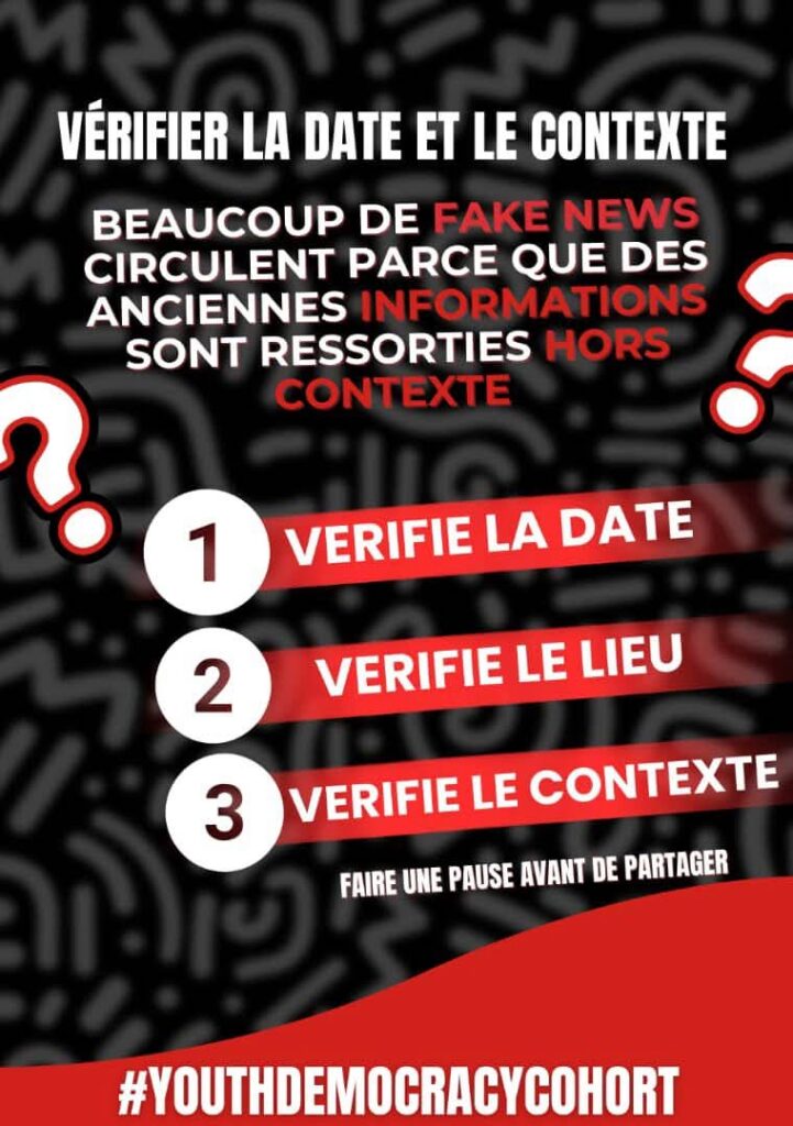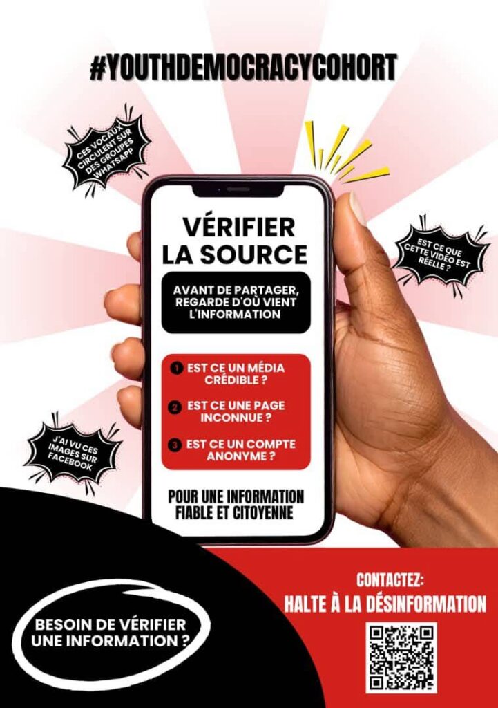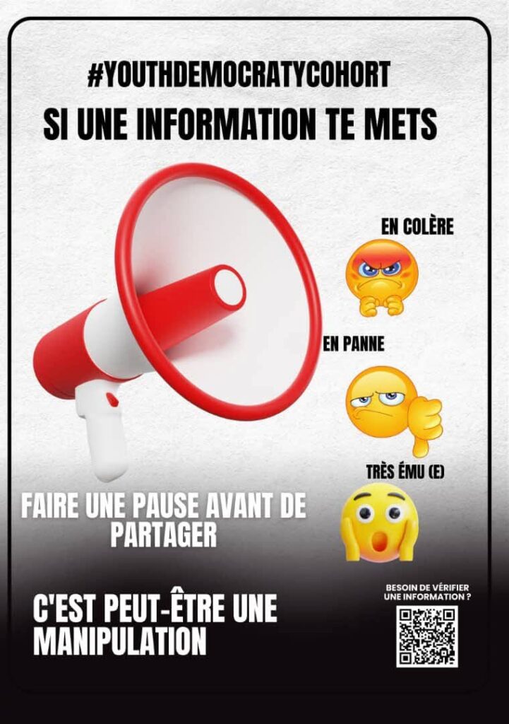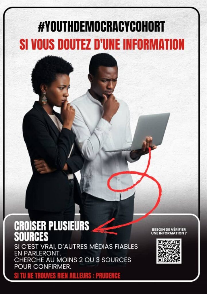 Un citoyen informé est un citoyen responsable. Adopter ces réflexes, c’est contribuer à un espace numérique plus sain.Soutenu par la Youth Democracy Cohort#Digitalement_Vôtre#MilitantNumérique#YouthDemocracyCohort