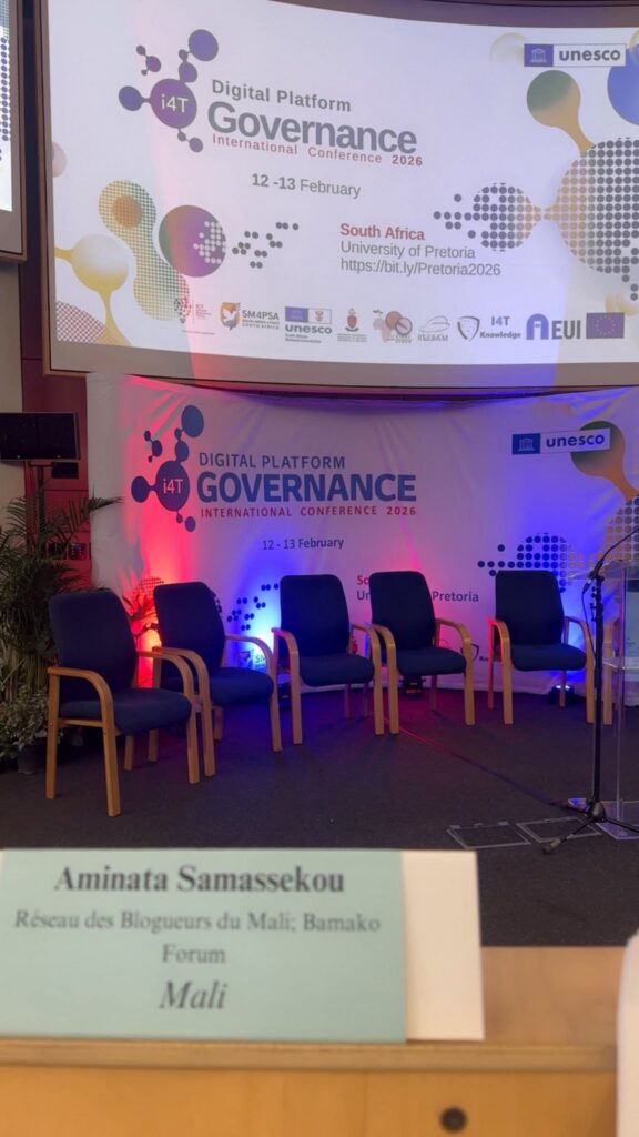 Du 10 au 13 février 2026, Komunitas, Le Réseau des Blogueurs du Mali a été représenté par sa coordinatrice Aminata Samassekou à la conférence internationale sur la gouvernance des plateformes numériques tenue à Pretoria.